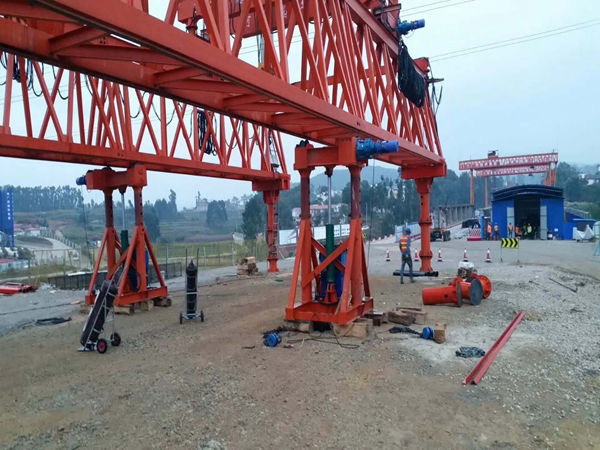 龍門吊租賃,龍門吊出租廠家,架橋機租賃廠家,架橋機出租,架橋機的主要組成:以JQ900A型龍門式雙主梁三支腿架橋機為例,主要由機臂、一號起重小車、二號起重小車、一號柱、二號柱、三號柱、液壓系統、電氣系統、柴油發電機組以及保護監控系統等部分組成。電話:18237336375【大橋起重】