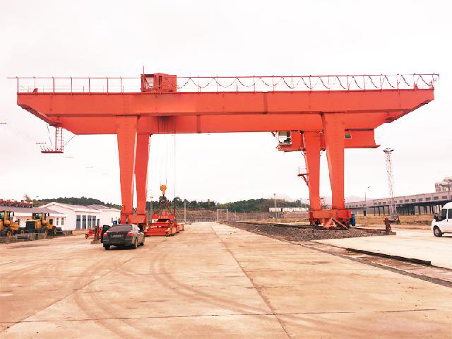 龍門吊是橋式起重機的一種變形,又叫龍門吊。主要用于室外的貨場、料場貨、散貨的裝卸作業。龍門吊具有場地利用率高、作業范圍大、適應面廣、通用性強等特點,在港口貨場廣泛使用。它的金屬結構像門形框架,承載主梁下安裝兩條支腳,可以直接在地面的軌道上行走,主梁兩端可以具有外伸懸臂梁。龍門吊(又稱龍門起重機)是橋架通過兩側支腿支撐在地面軌道上的橋架型起重機。在結構上由門架、大車運行機構、起重小車和電氣部分等組成。有的龍門吊只在一側有支腿,另一側支撐在廠房或棧橋上運行,稱作半龍門吊。龍門吊的門架上部橋架(含主梁和端梁)、支腿、下橫梁等部分構成。為了擴大起重機作業范圍,主梁可以向一側或兩側伸出支腿以外,形成懸臂。也可采用帶臂架的起重小車,通過臂架的俯仰和旋轉擴大起重機作業范圍。