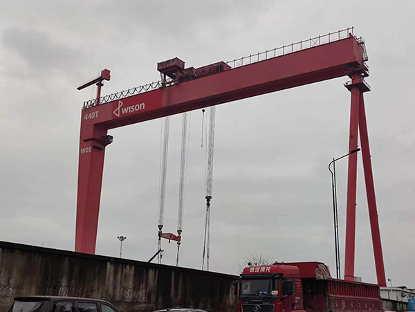 大型造船門式起重機(簡稱龍門吊)主要用于船廠船體制作場所以及大型鋼結(jié)構(gòu)裝焊平臺,可用于船體、海洋平臺和大型起重設(shè)備等大型鋼結(jié)構(gòu)的建造工作,對于船體等大型鋼結(jié)構(gòu)的翻身、合攏以及海工模塊、海工平臺的整體吊裝裝船或下水等作業(yè)優(yōu)勢尤為突出,效率高、成本低、安全風(fēng)險小。